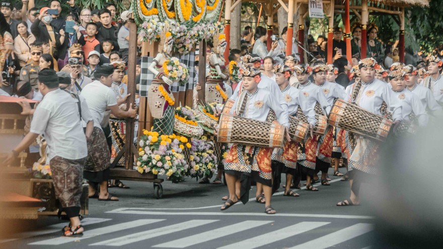 Tak lupa juga Gianyar menyuguhkan iringan tari legong. “Banyak tari legong yang lahir di Kabupaten Gianyar yang juga merupakan spirit fundamental dalam berkesenian bagi Masyarakat Gianyar,” jelasnya.