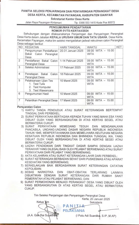 Penjaringan dan Penyaringan Perangkat Desa Kerta Dalam Jabatan Kepala Urusan Umum dan Tata Usaha