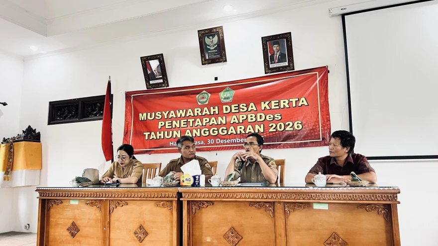 Untuk Tahun Anggaran 2026, Kepala Dinas PMD Kabupaten Gianyar menyampaikan harapannya agar seluruh program prioritas Pemerintah Kabupaten Gianyar dapat dilaksanakan dengan baik dan berjalan lancar di Desa Kerta, selaras dengan kebutuhan dan potensi desa.